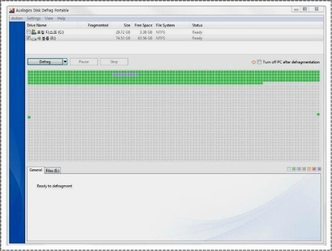 인스톨을 전부 해주셨다면 이제는 윈도우10 조각모음은 이 어플을 통해 해보면 됩니다. 조각모음할 드라이브를 선택해 주시고 나서 이제는 하단의 Defreg를 눌러주세요. 그러면 바로 조각이 모아지게 되어질건데요. 빨리 조각모음을 해주니 정말 추천한답니다.