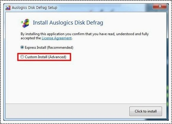 이렇게 인스톨 하는 화면이 나오게 되는데요. 이곳에서 제가 표시한부분은 체크박스 해제를 해주시기 바랍니다. 필요치않은 제휴 어플이에요. 그렇게 해야 깔끔하게 조각모음 어플리케이션만 인스톨이 될거에요.